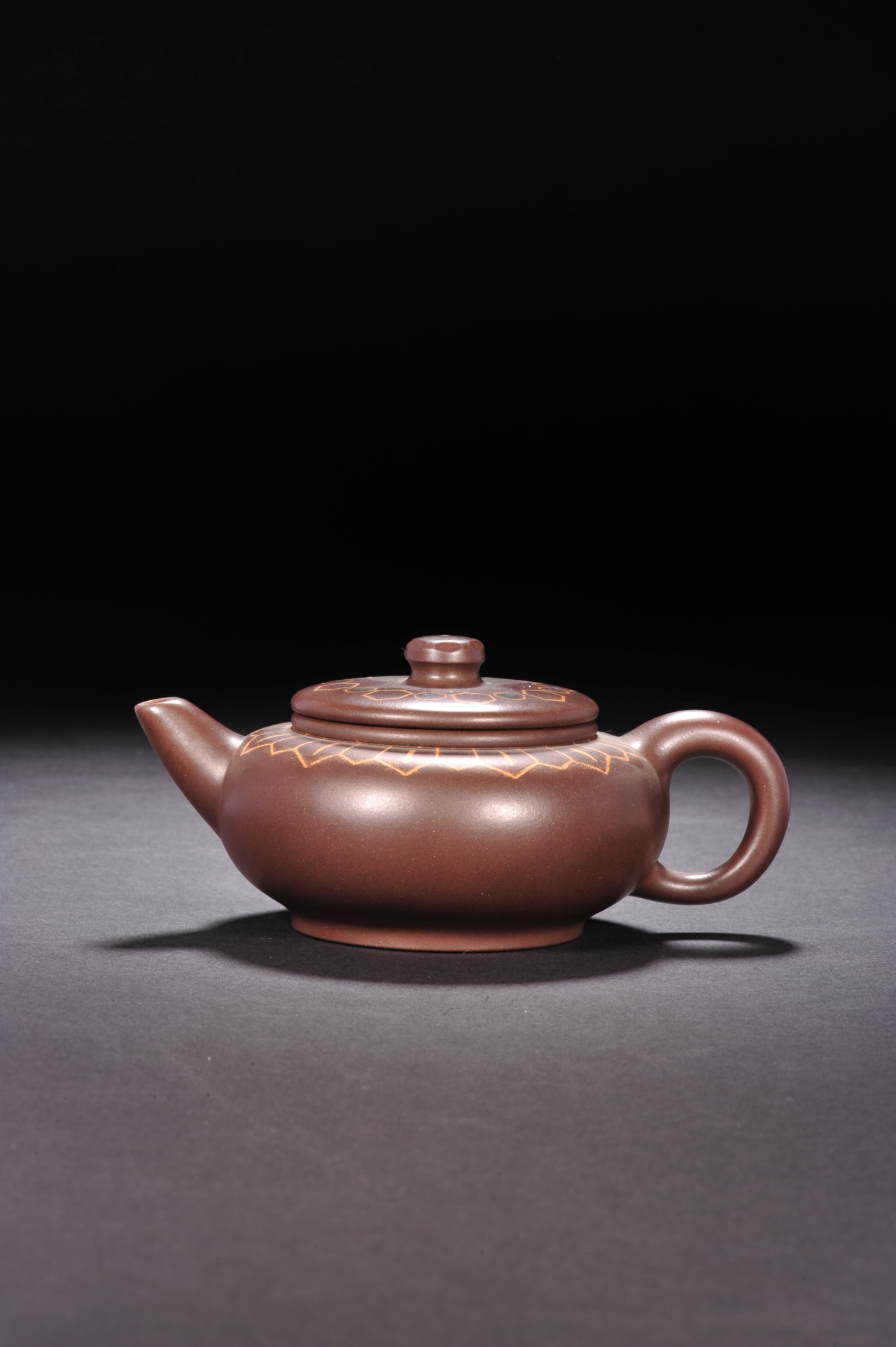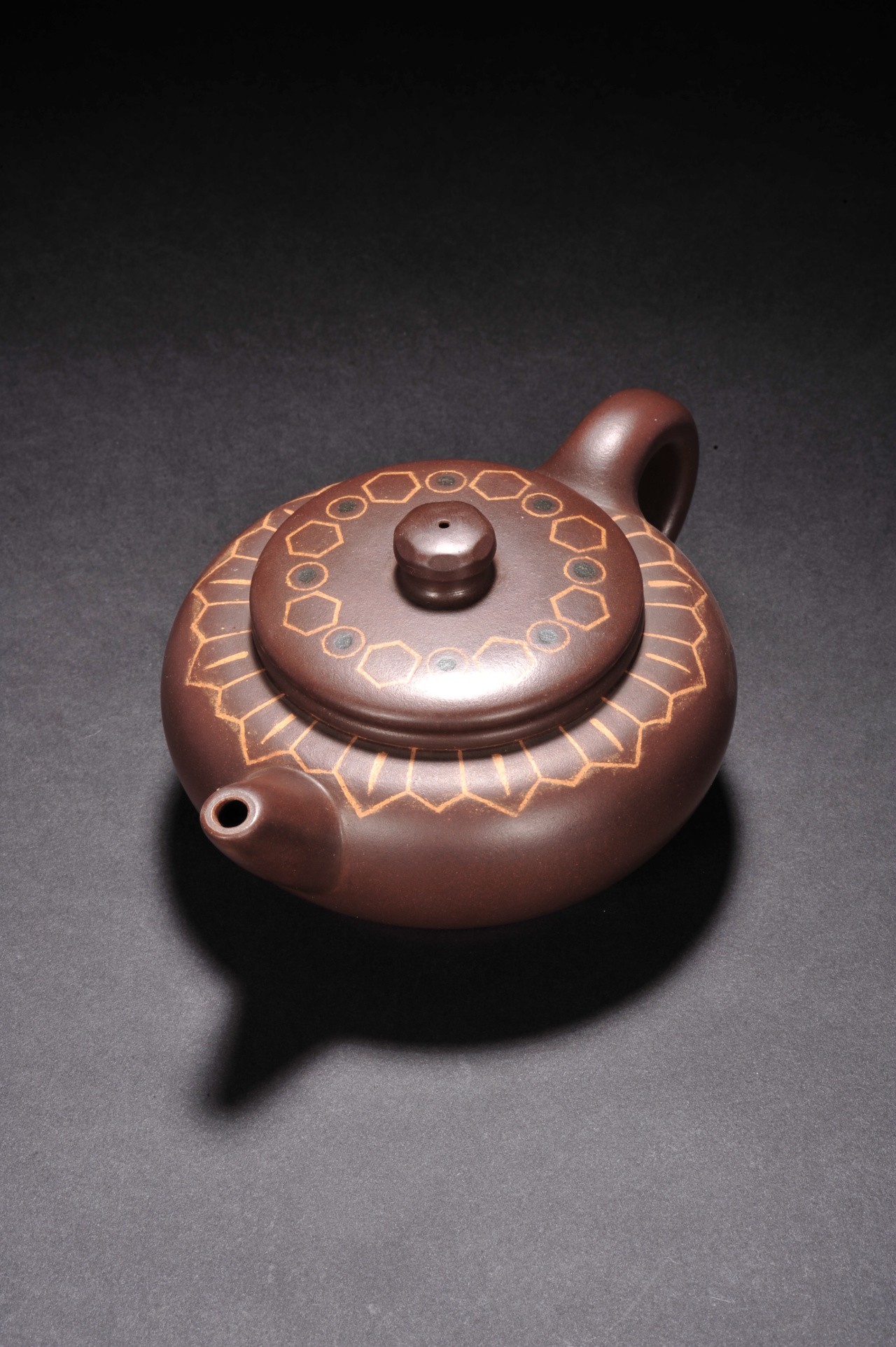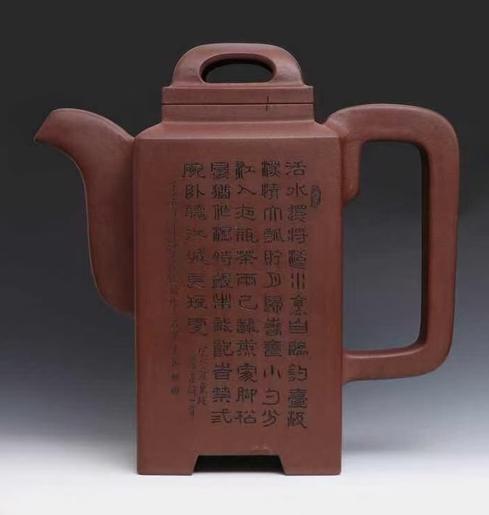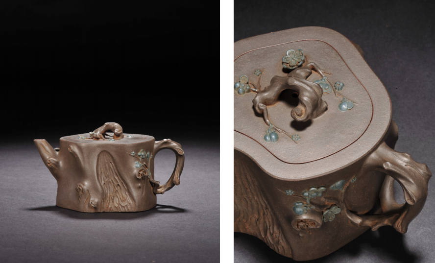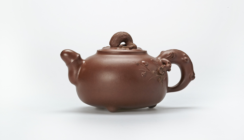 为了实现这一艺术理念的转变,何道洪开始了艰苦的探索之路。他在这一时期创作的“大松竹梅壶”“集思壶”“道鼎壶”等紫砂作品,一经问世便在紫砂界引起了巨大震动,有人盛赞:“他在紫砂壶上所表现出来的力度,是紫砂艺术上的一个重大突破。”何道洪对此有着深刻的见解:“紫砂壶的内涵,包括神、气、力三个要素。神意表达不丰盛,气质美感不完善,那是因为力度感不强。”于是,“神、气、力的完美结合”成为了“何氏风格”所推崇的至高境界,他的作品也由此步入了一个全新的艺术天地。
