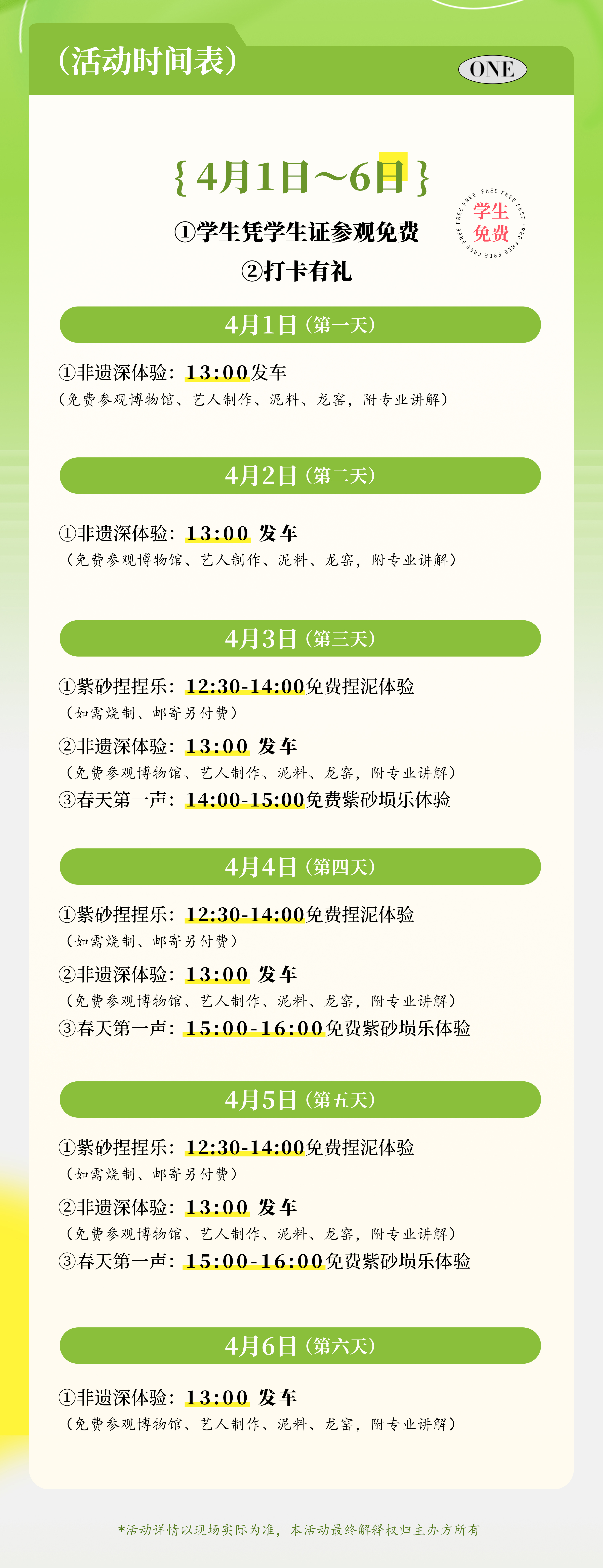 为鼓励青少年亲近传统文化,活动期间所有学生凭有效证件即可免费入园参观,近距离感知紫砂非遗之魅力。